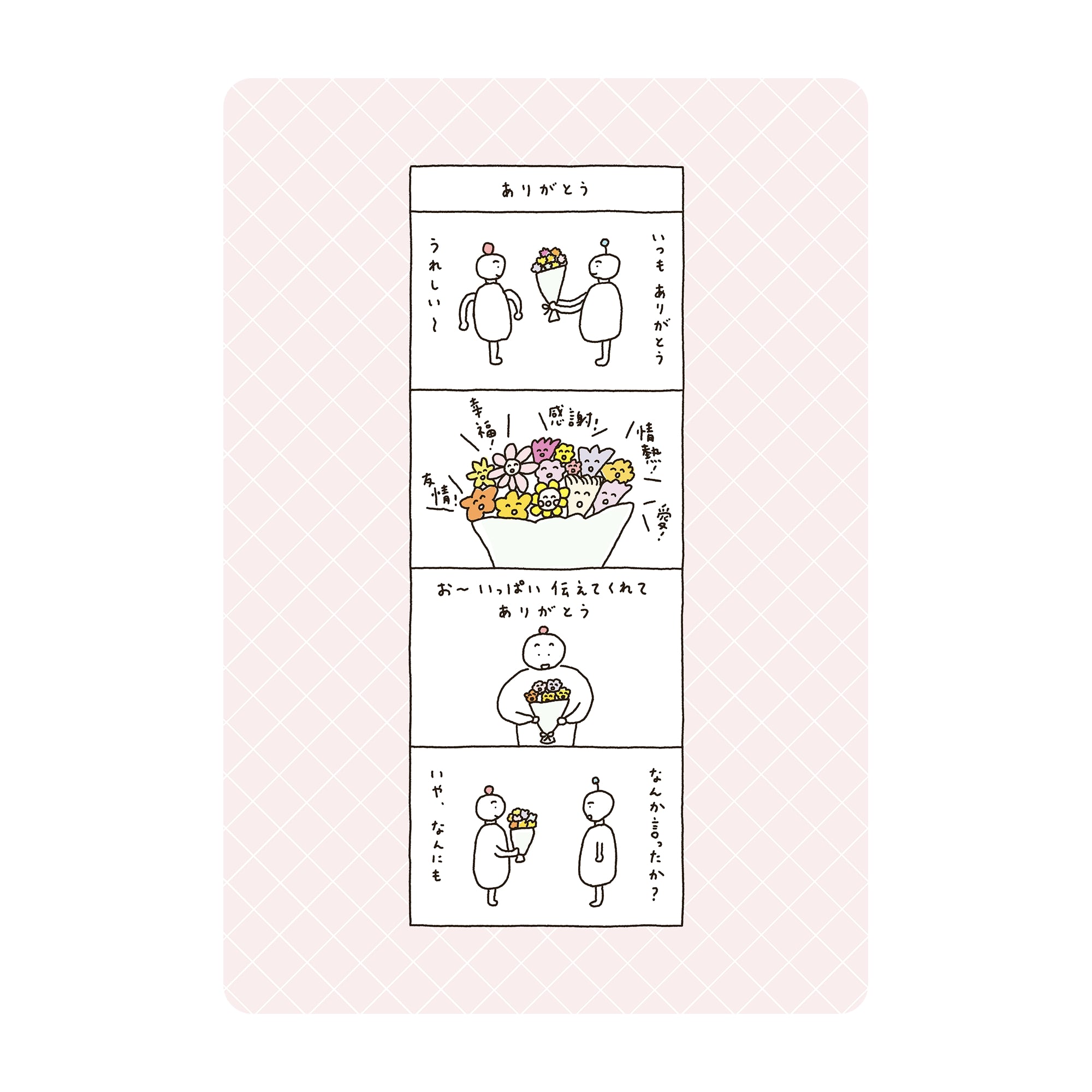 4コマ漫画「ありがとう」ポストカード。